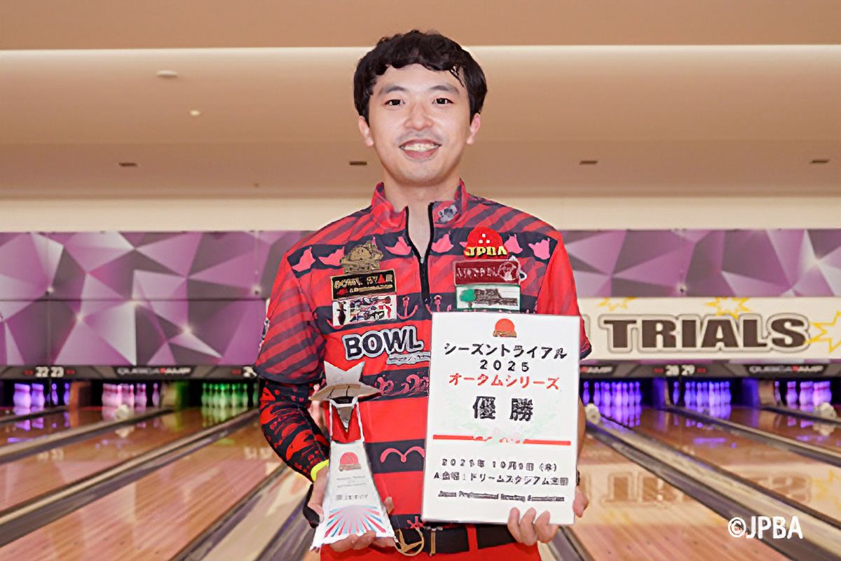 頂上決戦となった優勝決定戦では、斎藤祐太(株式会社ボウルスター所属)が倉持悠人(大学ボウル)を218対192で下し、見事シーズントライアル初優勝を飾りました。力強いストライクと冷静な試合運びが光った斎藤は、準決勝から安定したスコアで優勝候補の期待に応えました。