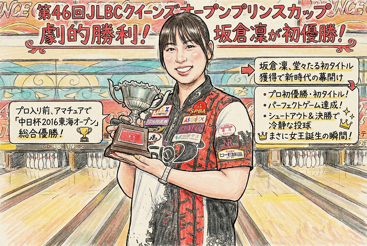 2025年12月4日から6日にかけて、東京都・品川プリンスホテルボウリングセンターで開催された「第46回JLBCクイーンズオープンプリンスカップ」は、白熱の戦いの末に新たな女王が誕生しました。プロボウラー・坂倉凜選手(カニエJAPAN・アソビックス所属)が、強豪揃いの決勝トーナメントを勝ち抜き、自身初となるタイトルを獲得しました。