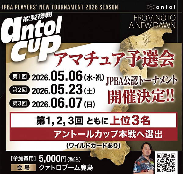 能登から新たなシーズンを告げる「アントールカップ男子トーナメント2026」のアマチュア予選会が、2026年5月から6月にかけて全3回開催されます。大会ビジュアルには「FROM NOTO A NEW DAWN(能登から、新しい夜明け)」のメッセージが掲げられ、地域から競技の新しい流れを生み出していく意志がうかがえます。